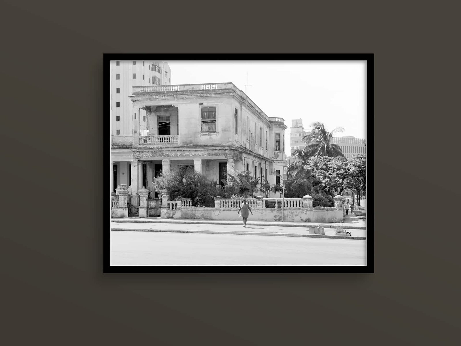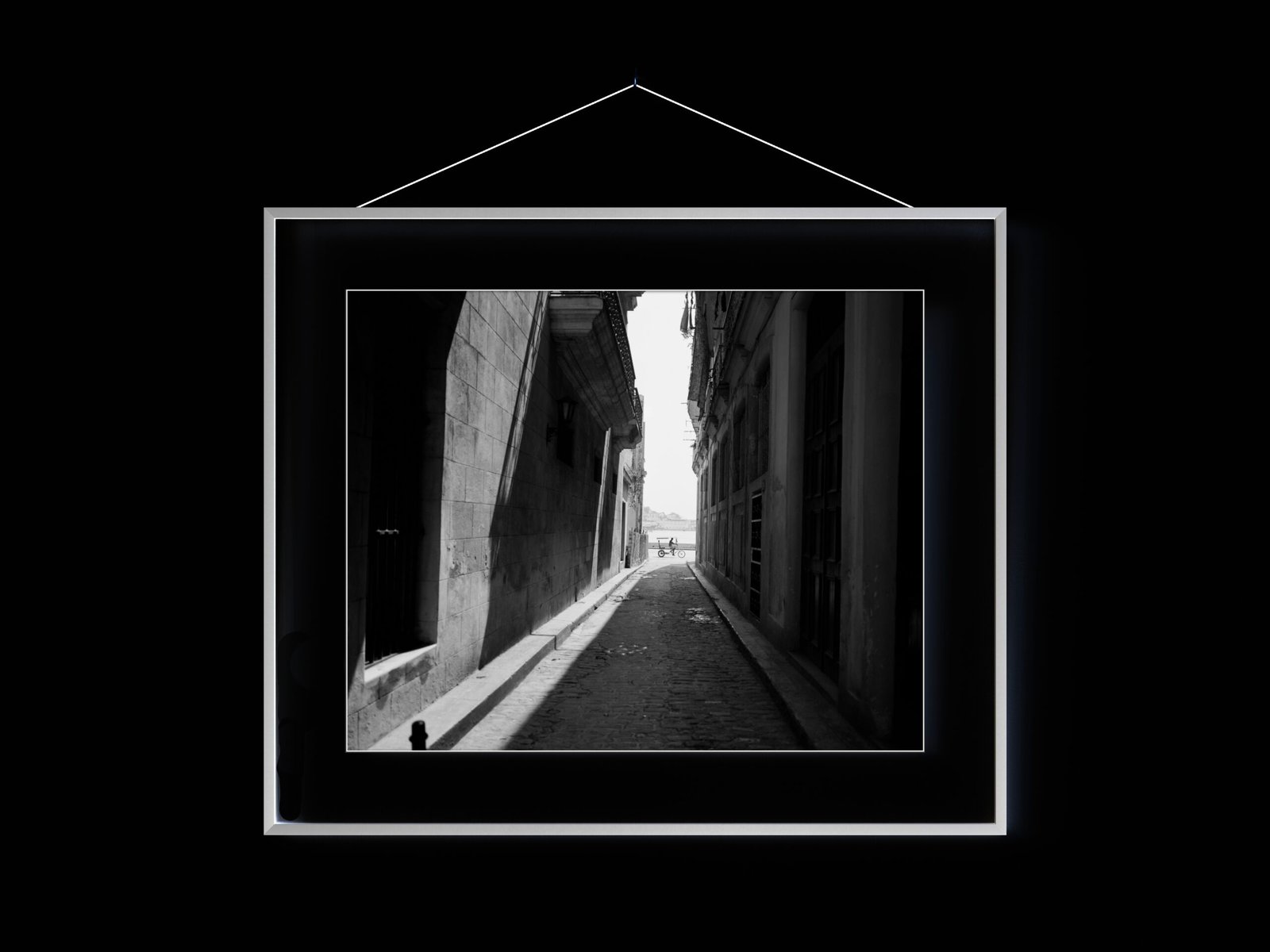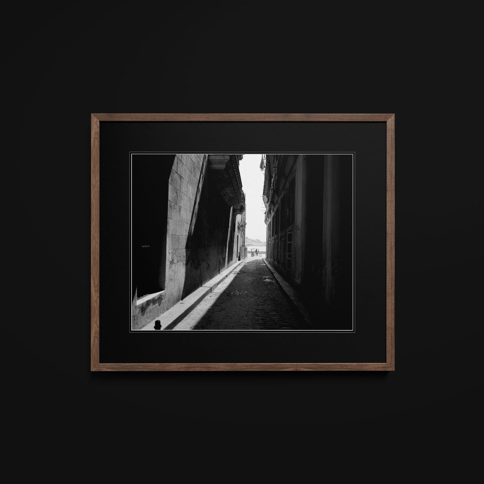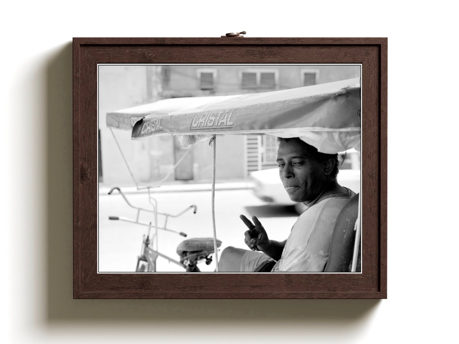 Instant Download black-and-white photograph of a cycle rickshaw on a street in Old Havana (La Habana Vieja), Cuba.
